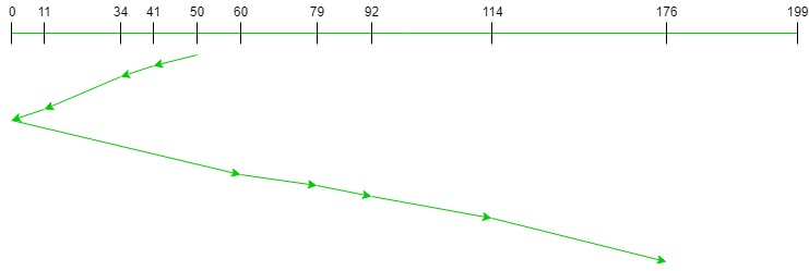 既然按顺序来不靠谱,那换一个思路:每次都去离当前位置最近的那个请求。这就是 SSTF(Shortest Seek Time First),最短寻道时间优先。